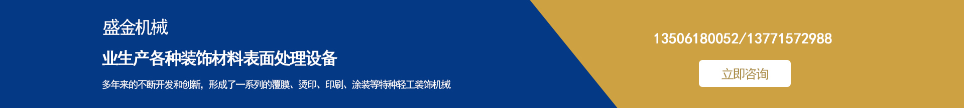 盛金機械專業(yè)生產(chǎn)各種裝飾材料表面處理設(shè)備 集多年來的不斷開發(fā)和創(chuàng)新,形成了一系列的覆膜、燙印、印刷、涂裝等特種輕工裝飾機械。并敢于和善于開發(fā)用戶急需的特殊要求機械設(shè)備。